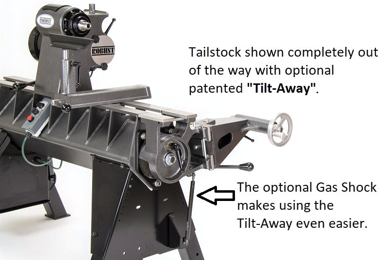 - TILT-AWAY: The optional and patented Tilt-Away gets the tailstock completely out of the way and allows you to quickly and easily bring it back into position. Add a gas shock and make repositioning the tailstock a one finger operation.