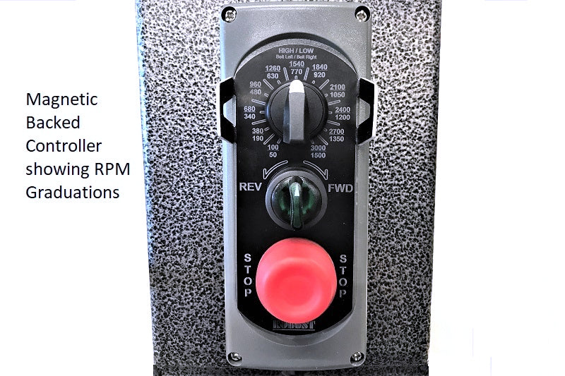- CONTROL: The corded pendent controller is fitted with two rare earth magnets and can be moved anywhere on the lathe except the stainless steel ways, which are non-magnetic. You can start and stop the lathe, change direction and change speed all with this unit.