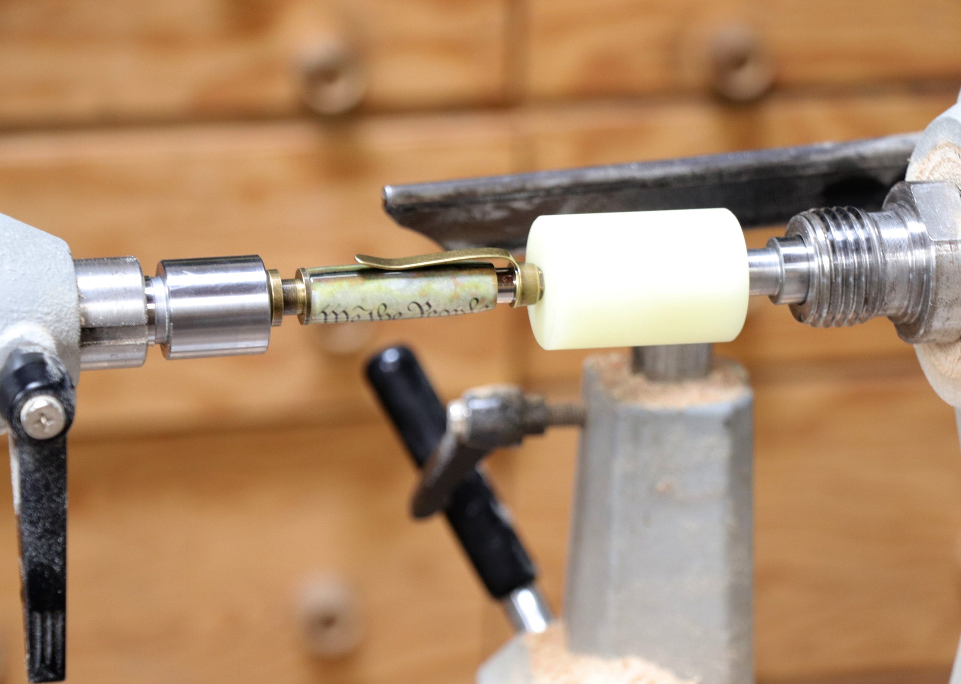 - Use your lathe to press your pen parts together perfectly straight every time.