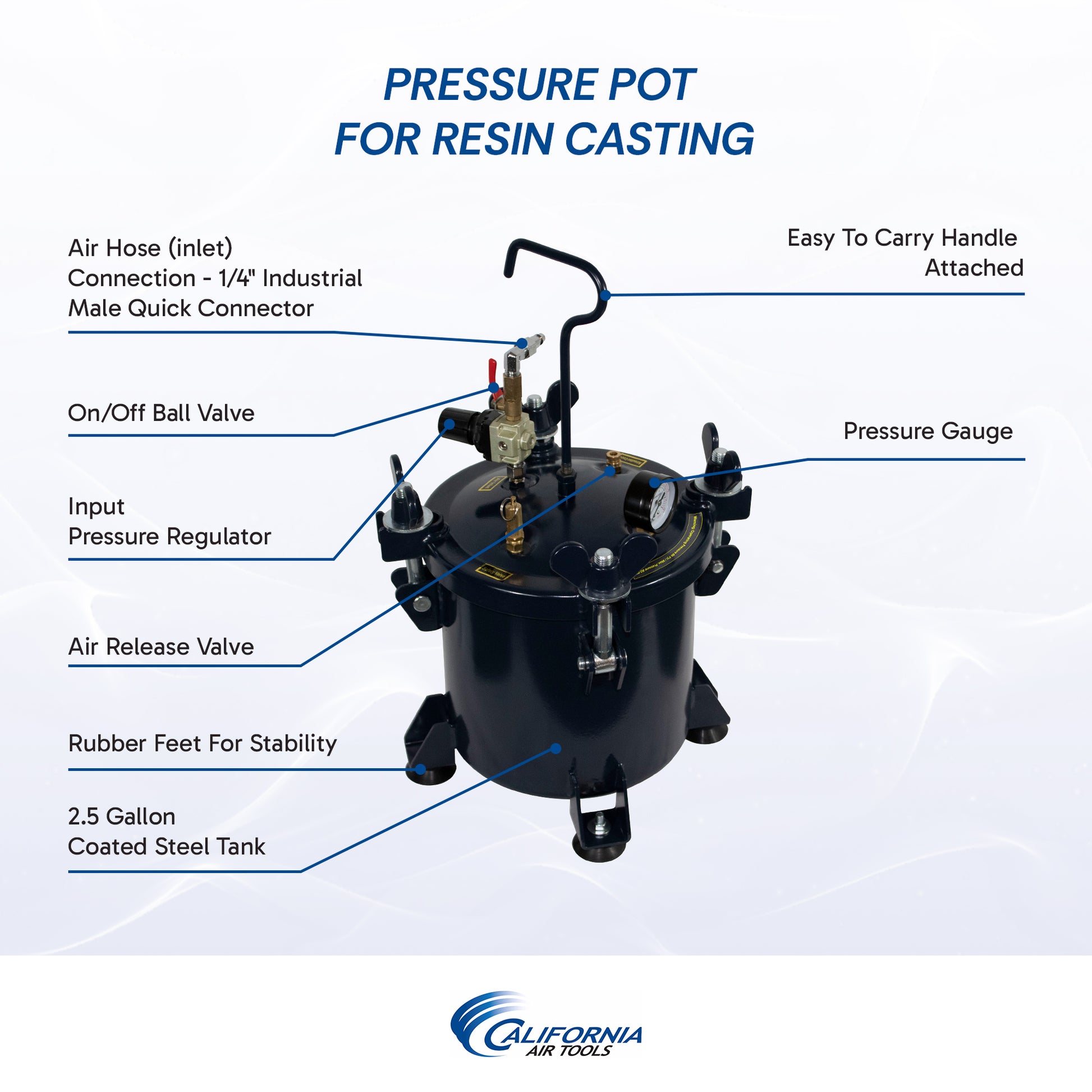 The California Air Tools Pressure Pots are perfect for casting, as they come ready to use out of the box. Rated for safety and high quality, these pressure pots offer peace of mind and reliable performance. Trust in their expert design for a successful casting experience.