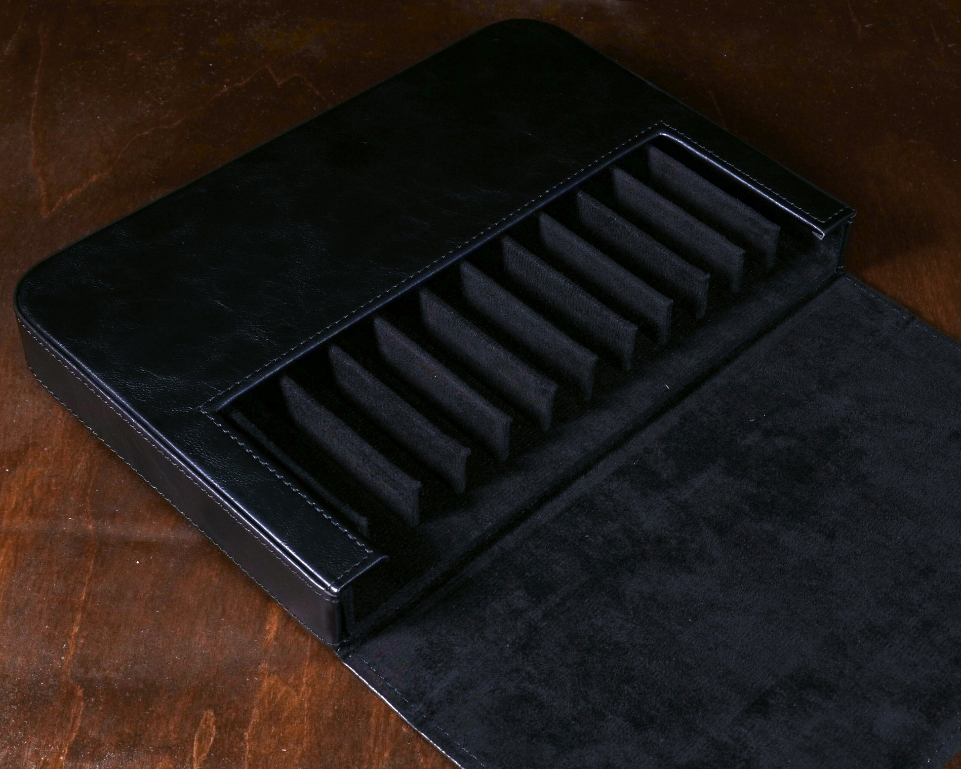This high end leather pen case is perfect for the discerning collector of pens. Crafted with the finest leather, it offers durable protection and elegant storage for your prized writing instruments. With its sophisticated design and quality construction, this pen case is a must-have for any pen enthusiast.