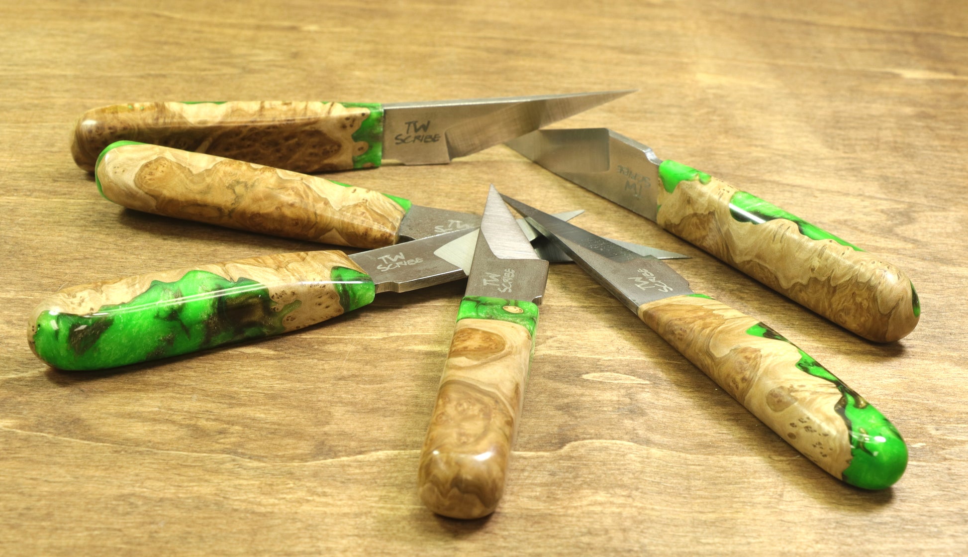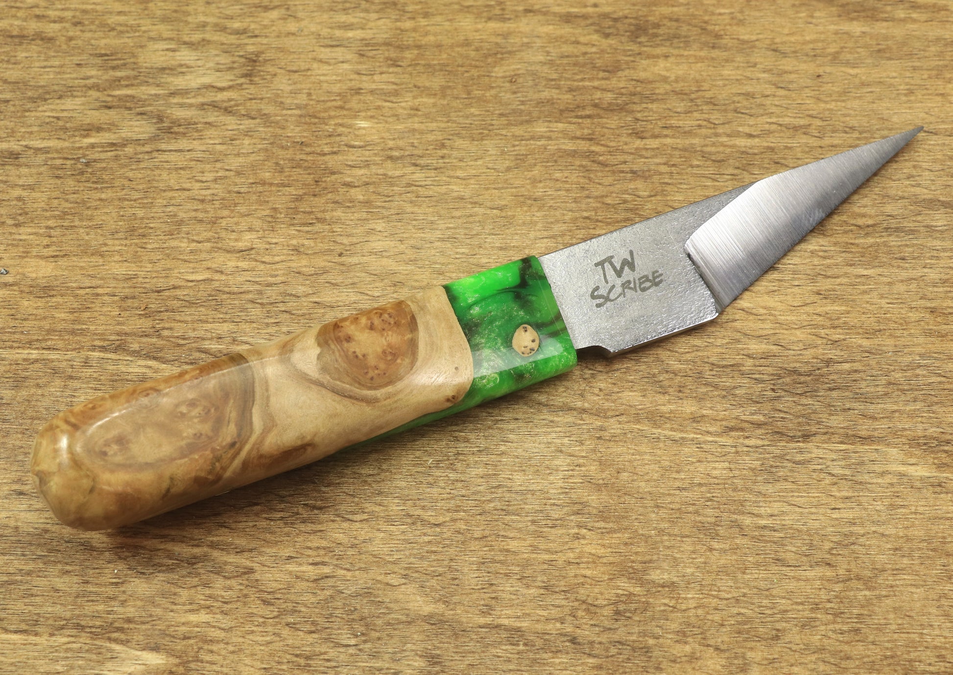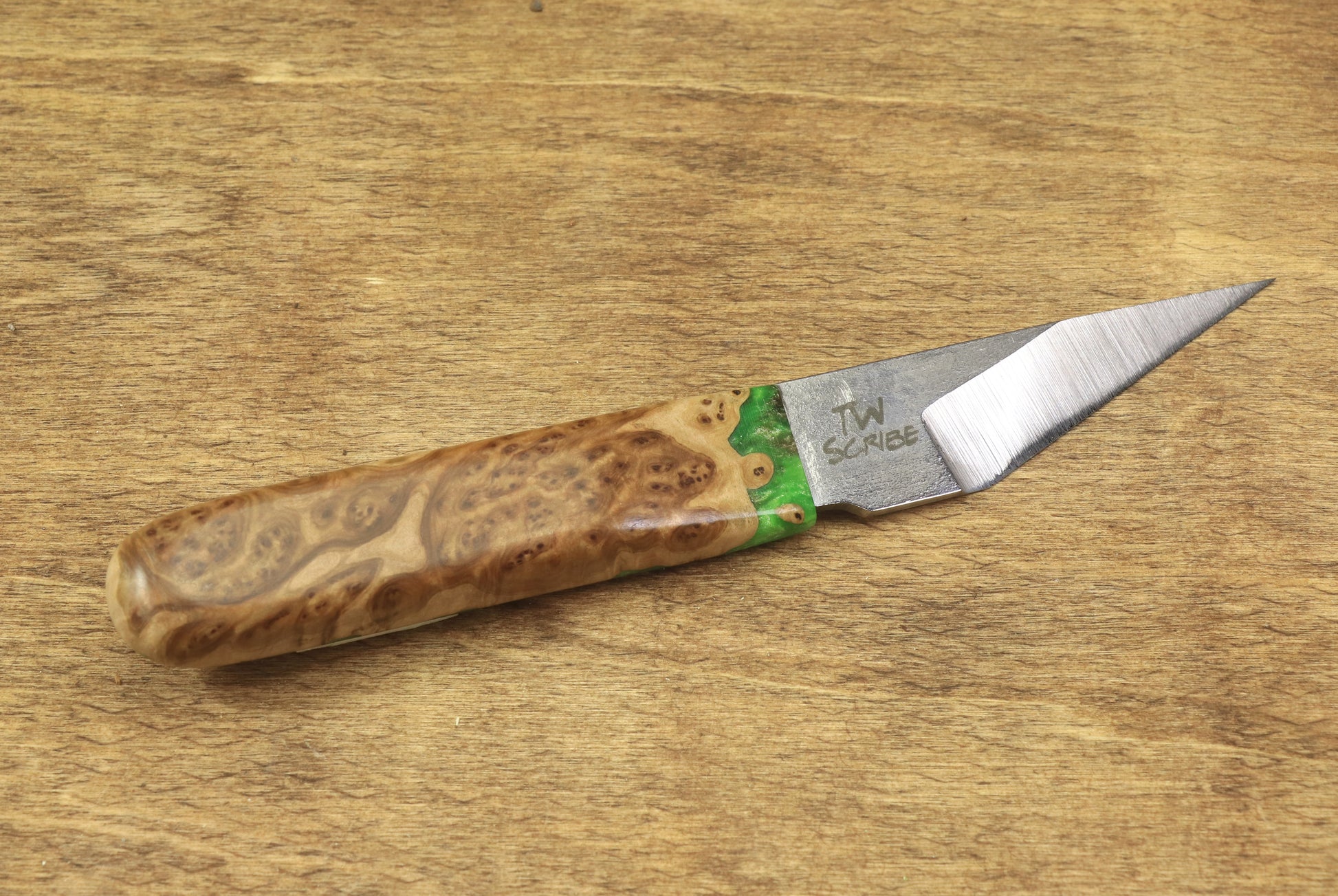 The Turners Scribe Knife is an essential tool for any woodworker. Its stunning burl hybrid handle adds both functionality and style to your crafting. Craft with confidence and precision using this expertly crafted knife.
